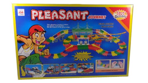 Description : Piste de couleur composé d'un des éléments solides blocs s'emboîtent, comprend également un viaduc, une station d'essence et de voitures.